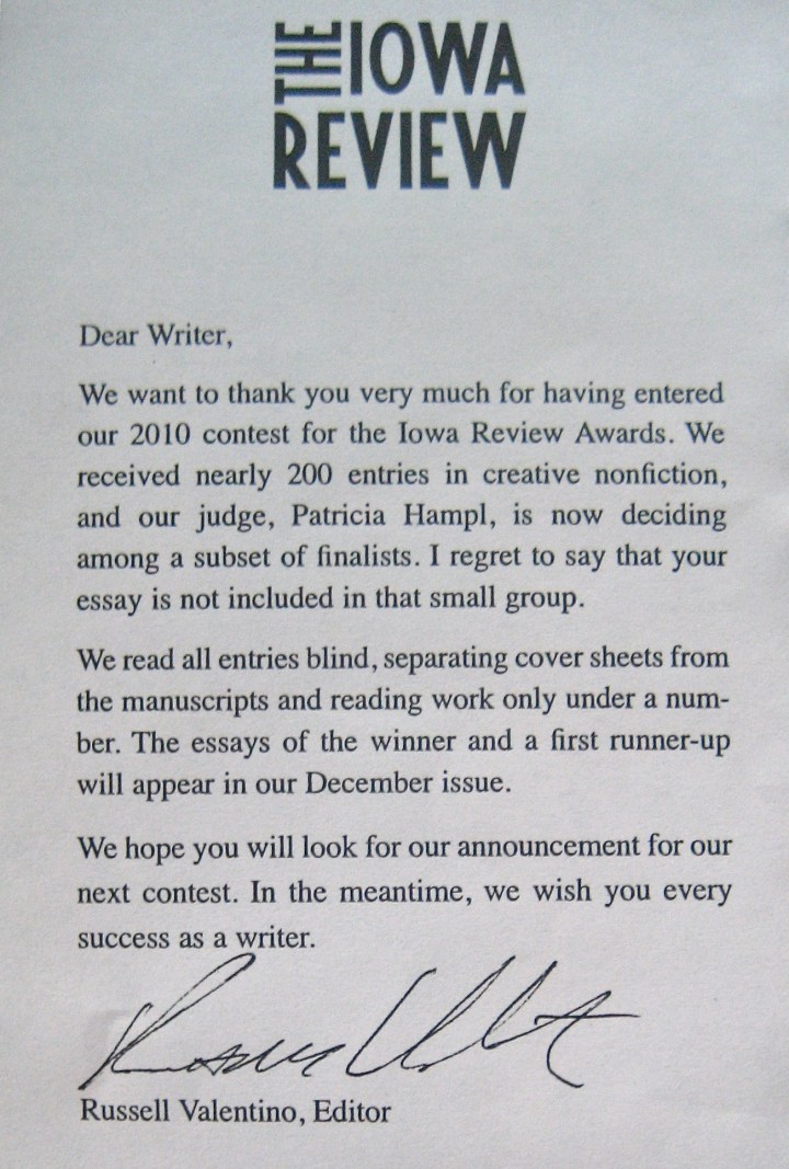 In the matters of the heart, these may begin “Dear John…”  In the world of publication, they often start, “Dear Writer…”