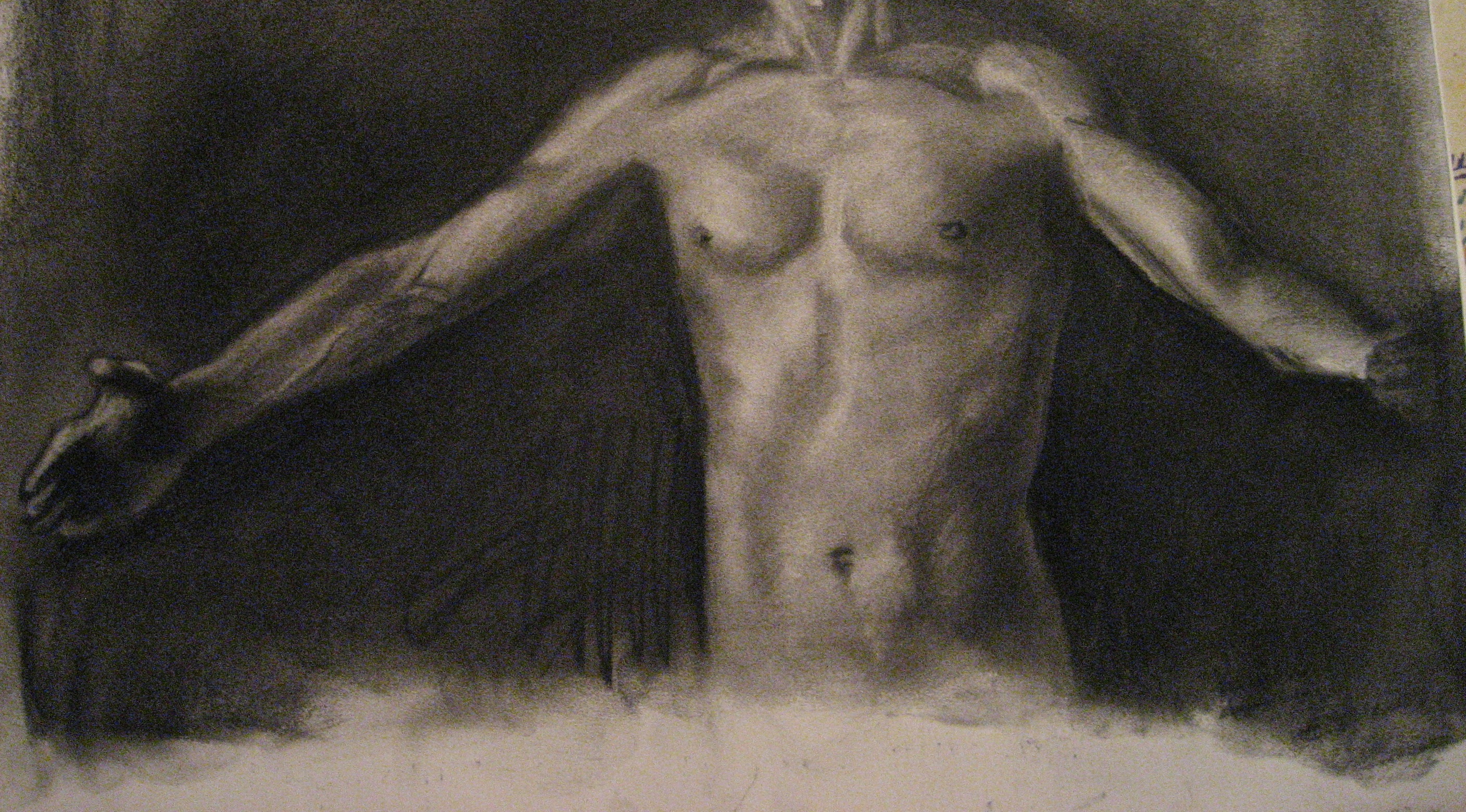 I flip back to the mystery artist’s rendering of the perfect human shape. The man’s arms outstretched. This is the ideal canvas upon which my golden door could rest. I ponder how I could superimpose my door on his chest. The door’s too big. Maybe I should leave him alone.