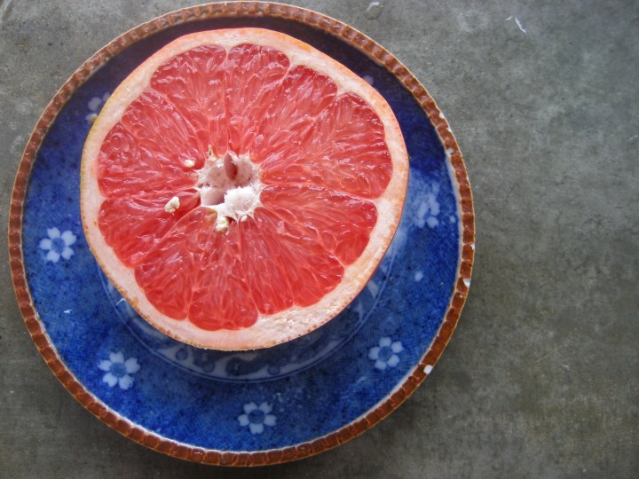 Grapefruit, dragon fruit, mango sap. A bottle neck, a potholder woven by Jeb, some shards from my grandmother’s dishes. Vegetables from the garden.