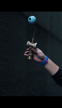 With his kendama (see picture at right).