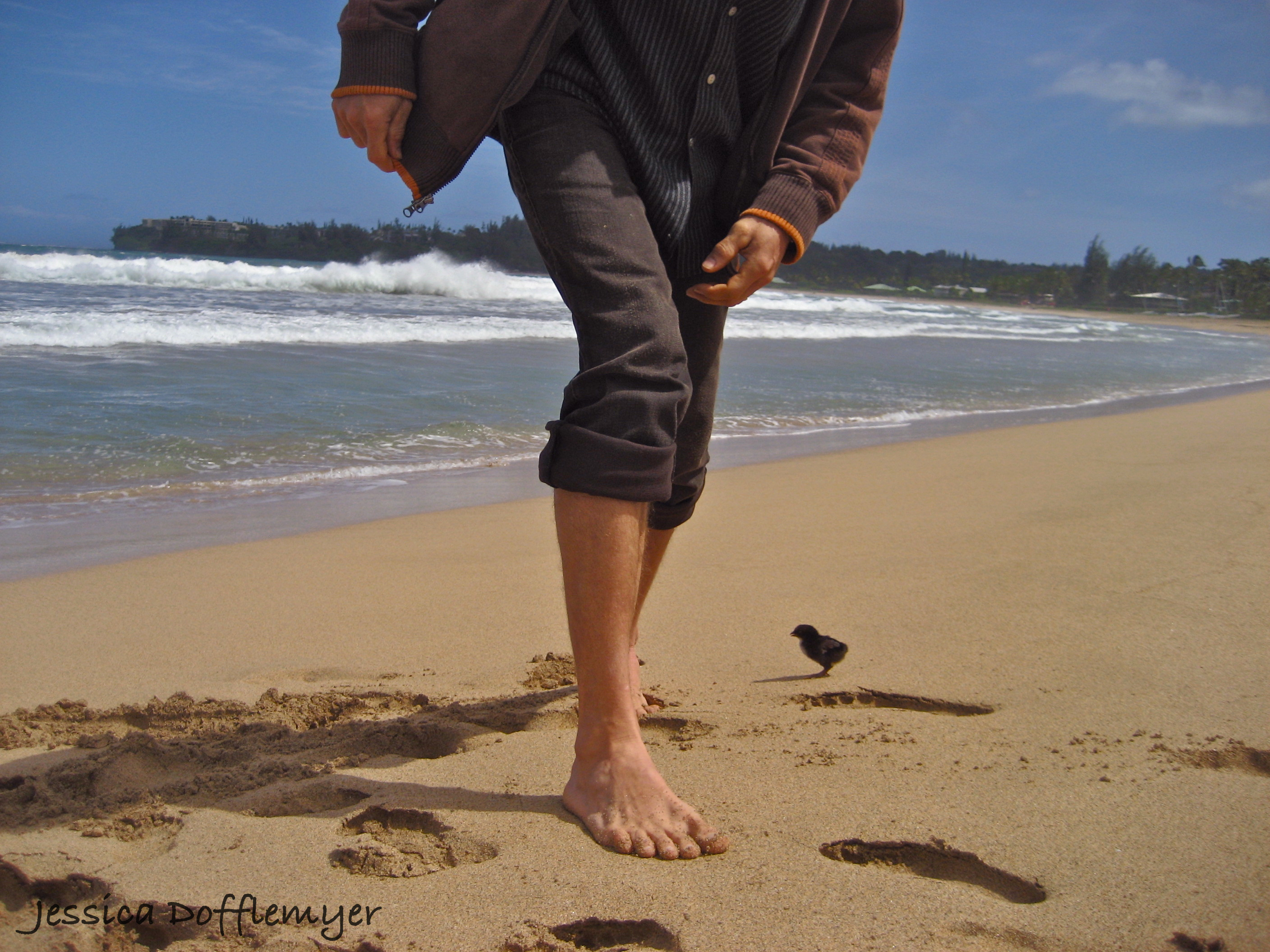But the story goes that the Bohemian was planting trees one day, (surrounded by scavenging wild chickens, of course) when the chirp of one particular bird got his attention. There, all alone, was a small little fluff ball, so weak it could barely stand. Only enough energy to sound its little plea, non-stop. When he went to it, it quickly imprinted on to him. Following him around, trying to get on his pant leg. It even mustered enough strength to climb the three-foot pile of soil in an attempt to get closer to him- peeping all the way.