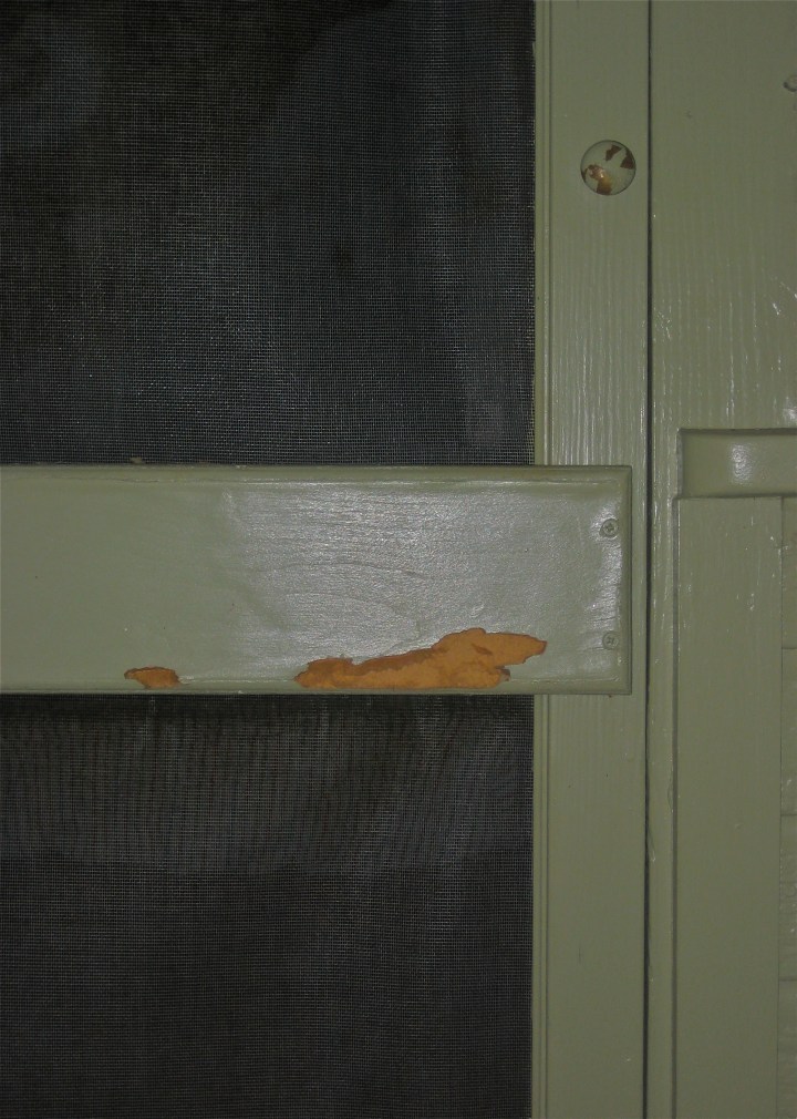 Plants are chewed to nubs and a large gnash in the wood of the screen door prove that she came calling, apparently trying to chew her way inside.