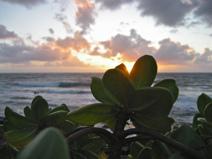 Eventually, it was time to come out from the shadow. As promised, the moon began to emerge, casting light on the coconut fronds and ocean waves below us. In the early morning hours the sky lightened, though the sun was not yet risen.